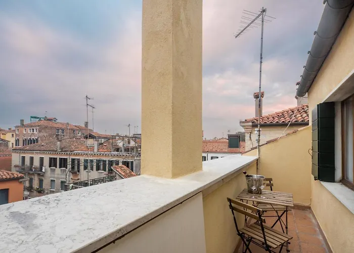 The 1-room Bright Apartment On Venetian Roofs R&R is located 950 metres from Venezia Santa Lucia train station and around a 5-minute walk from the Natural History Museum. Staying in this spacious apartment, nestled not far from the ornate covered 16th-century stone footbridge "Rialto Bridge", guests can relax on a terrace.